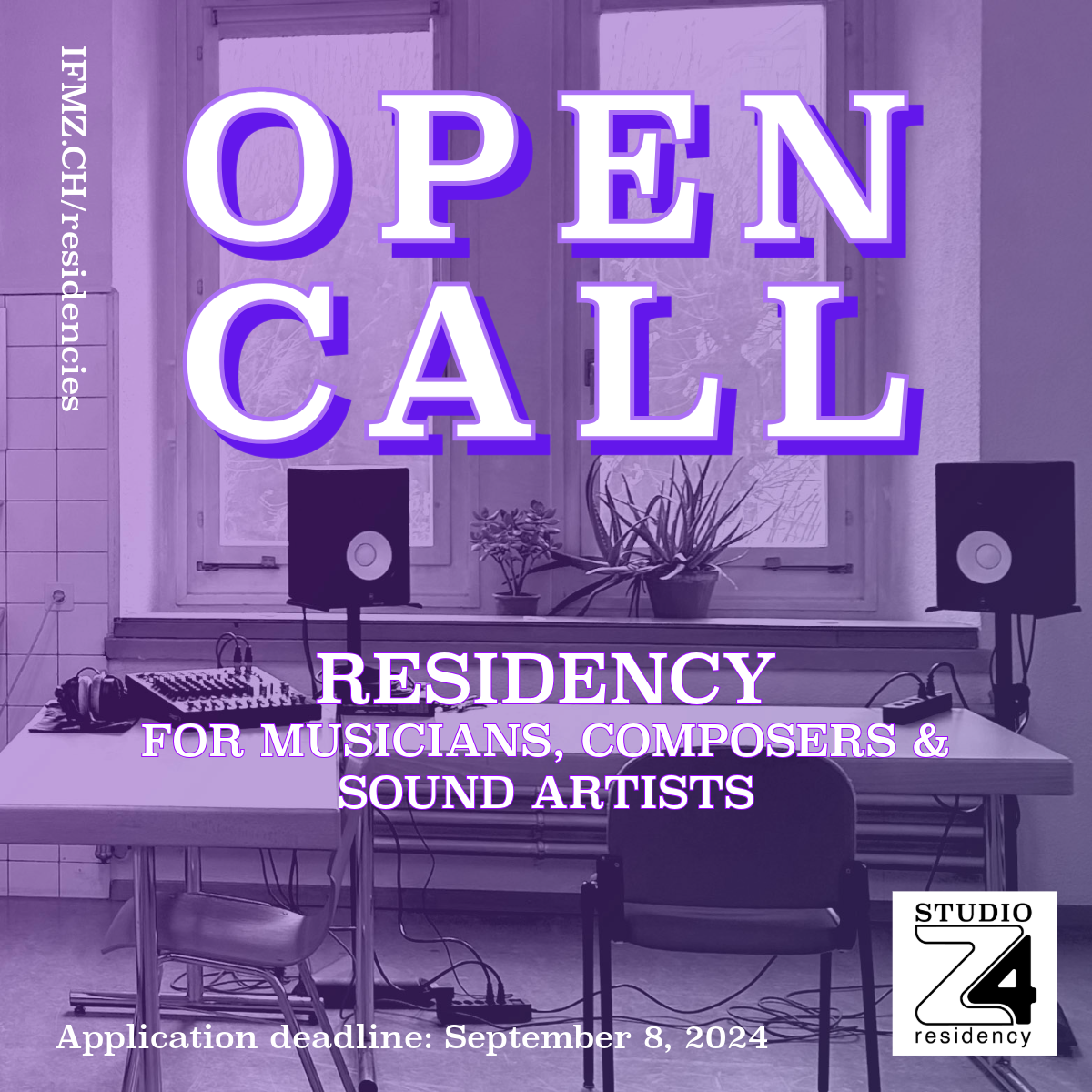 Ab Winter 2023/24 bietet die IFMZ in Kooperation mit SONIC MATTER – Plattform für experimentelle Musik und Oto Sound Museum ein Residenzprogramm im Studio 1 der IFMZ-Räumlichkeiten des Zeughaus 4 im Kasernenareal Zürich an. Der Open Call richtet sich an in der Schweiz lebende Soundkünstler:innen, Musiker:innen und Komponist:innen mit Fokus auf zeitgenössische, experimentelle Musik oder installative und spartenübergreifende Praxen. Bewerben können sich Einzelpersonen oder Duos. Für Bands und grössere Ensembles ist die Residenz nicht geeignet. Die Residenz ist auch offen für Künstler:innen aus Zürich.